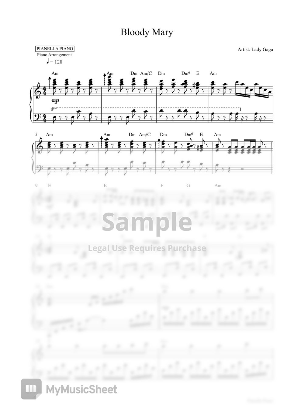 Lady Gaga Bloody Mary (Piano Sheet) Sheets by Pianella Piano